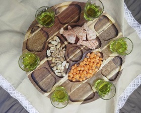 سینی سرو پایه چرخشی به همراه 6 عدد شات بلور