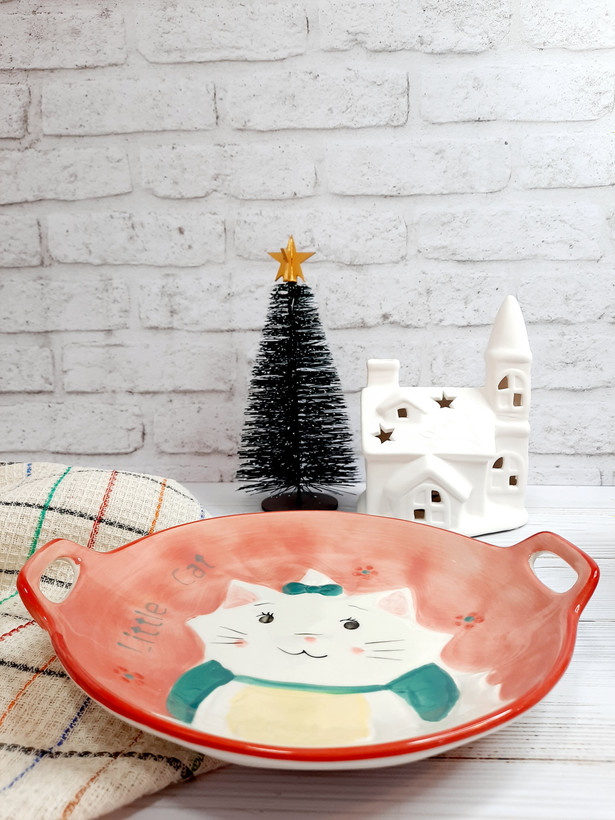 بشقاب سرامیک گربه اشرافی طرح برجسته